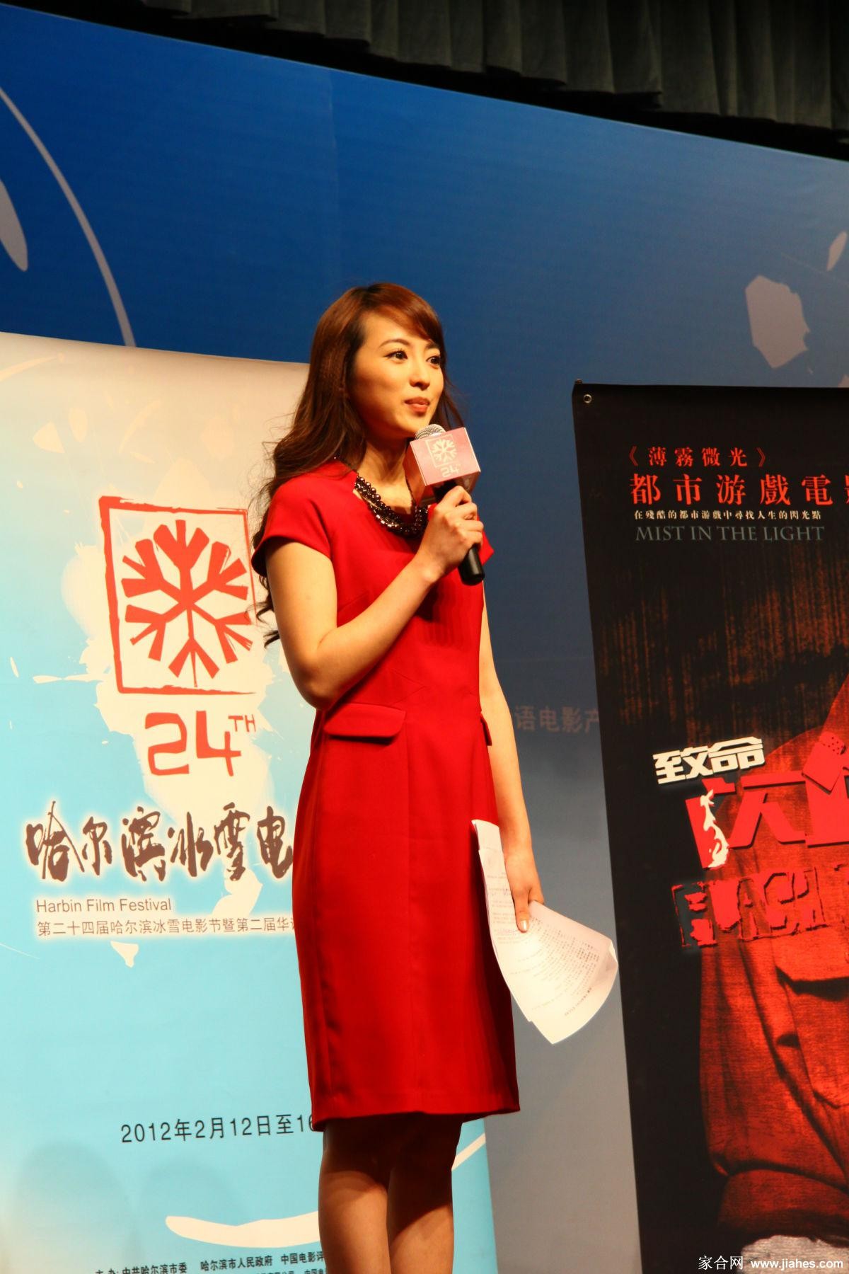李蜜身着修身红裙侧身而立,裙摆摇曳间勾勒出优雅的腰臀曲线,回眸瞬间眼神温柔而坚定