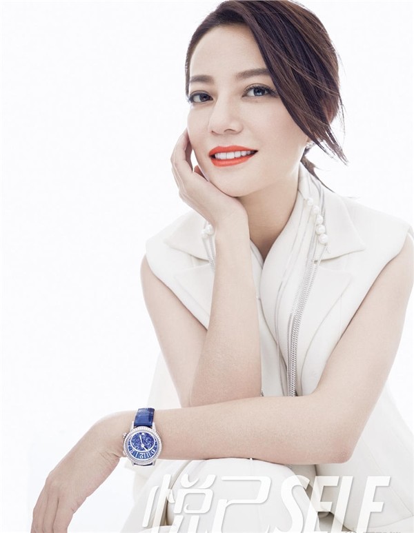 赵薇展现从容淡定的优雅姿态,暖色调光影勾勒其面部轮廓